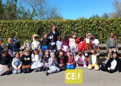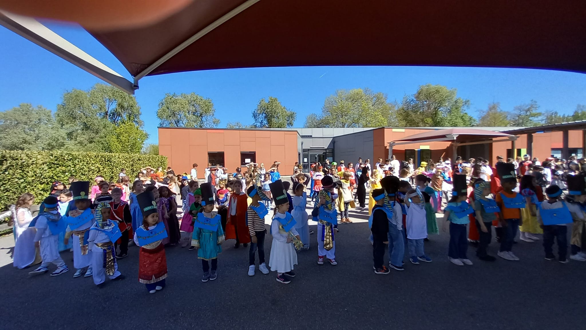 Mardi 7 avril sous un beau soleil cool, c’était le Carnaval à l’école. Tous les enfants étaient déguisés, contents de faire la fête, de danser et finir par un petit goûter