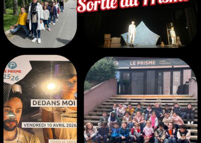 Les élèves de grande section ont eu la chance d’assister à un spectacle au Prisme autour du thème des émotions. À travers cette représentation, les enfants ont découvert et exploré différentes émotions telles que la joie, la peur, la colère ou encore la tristesse.