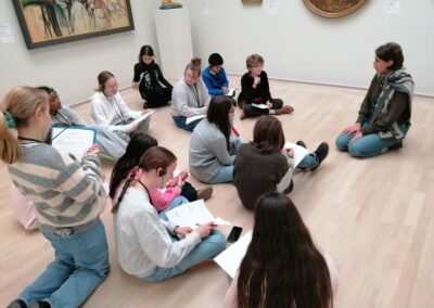Découverte des mythes et légendes du Japon à travers les Manga au musée Guimet le matin et Atelier musique du Monde au Musée du Quai Branly. Des belles découvertes et surtout des sources d’inspiration pour leur futur spectacle….